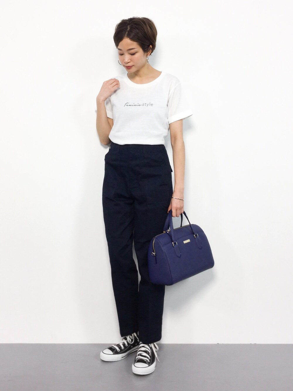 mihiroのカーゴパンツ「【MORE 6月号掲載】【InRed 4月号掲載】ハイウエストベイカーパンツ」を使ったコーディネート
