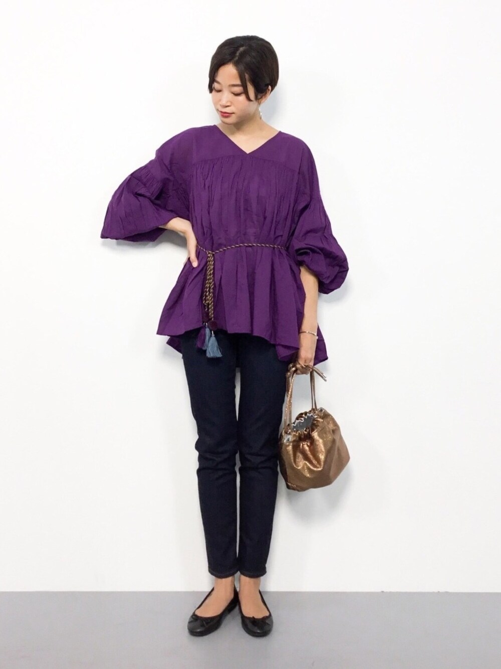 mihiroのシャツ/ブラウス「インドコットン ボリュームスリーブブラウス〈タッセルコードベルト付き〉」を使ったコーディネート
