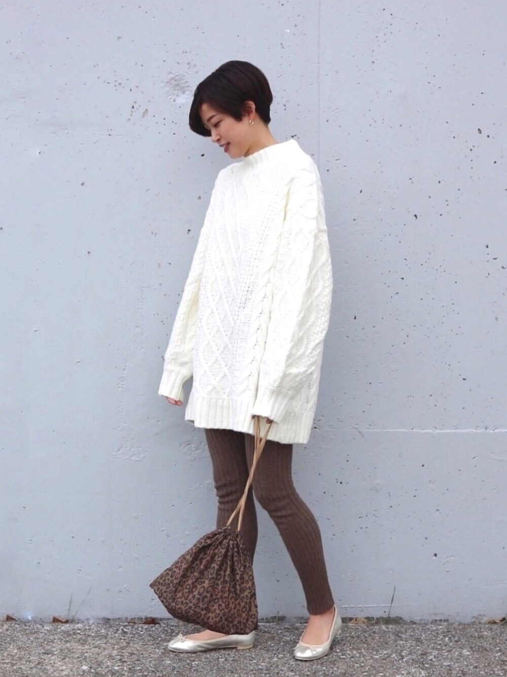 きれいめカジュアル. 旬なニットレギンスで足元ぽかぽか. ゆったり着られるニットは、 156cmでもちょうど良いバランス◎