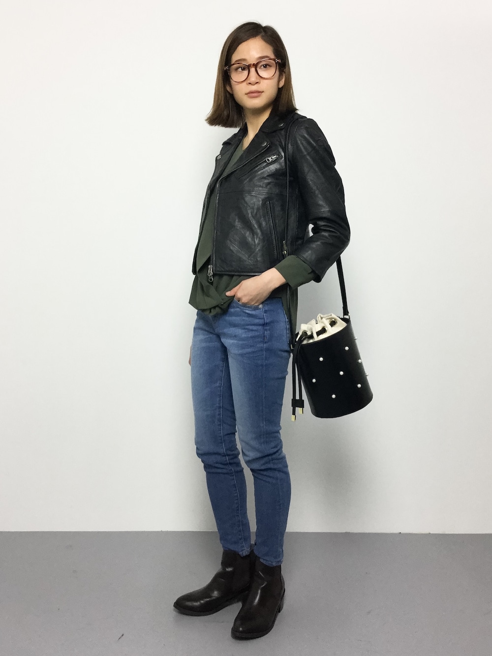mihiroのライダースジャケット「B.I.D./WレザーライダースJKT」を使ったコーディネート