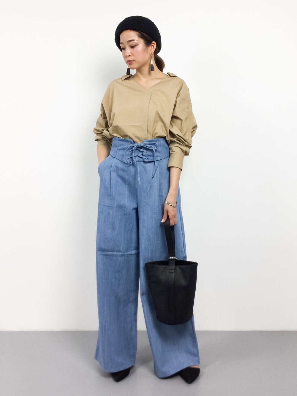 mihiroのデニムパンツ「レースアップデニムワイドパンツ」を使ったコーディネート