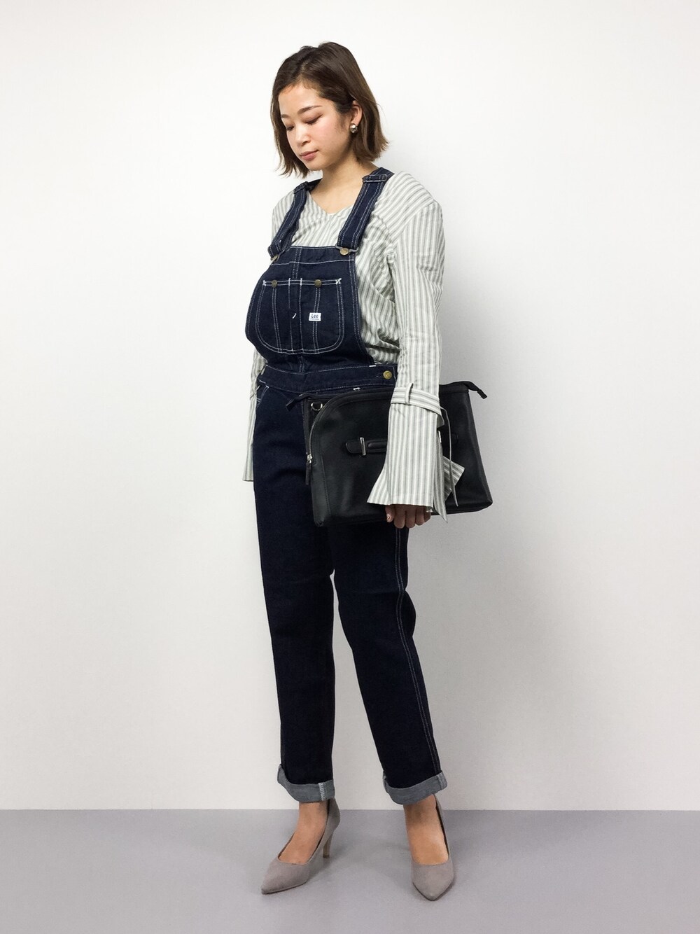 きれいめカジュアルコーデ カジュアルなオールインワンの中にブラウスを合わせて、大人っぽくまとめました。 お出かけには、スニーカーを合わせるのもオススメです。