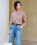 mihiroのTシャツ/カットソー「【プレミアムコットン】ボーダードルマンVネックトップス」を使ったコーディネート
