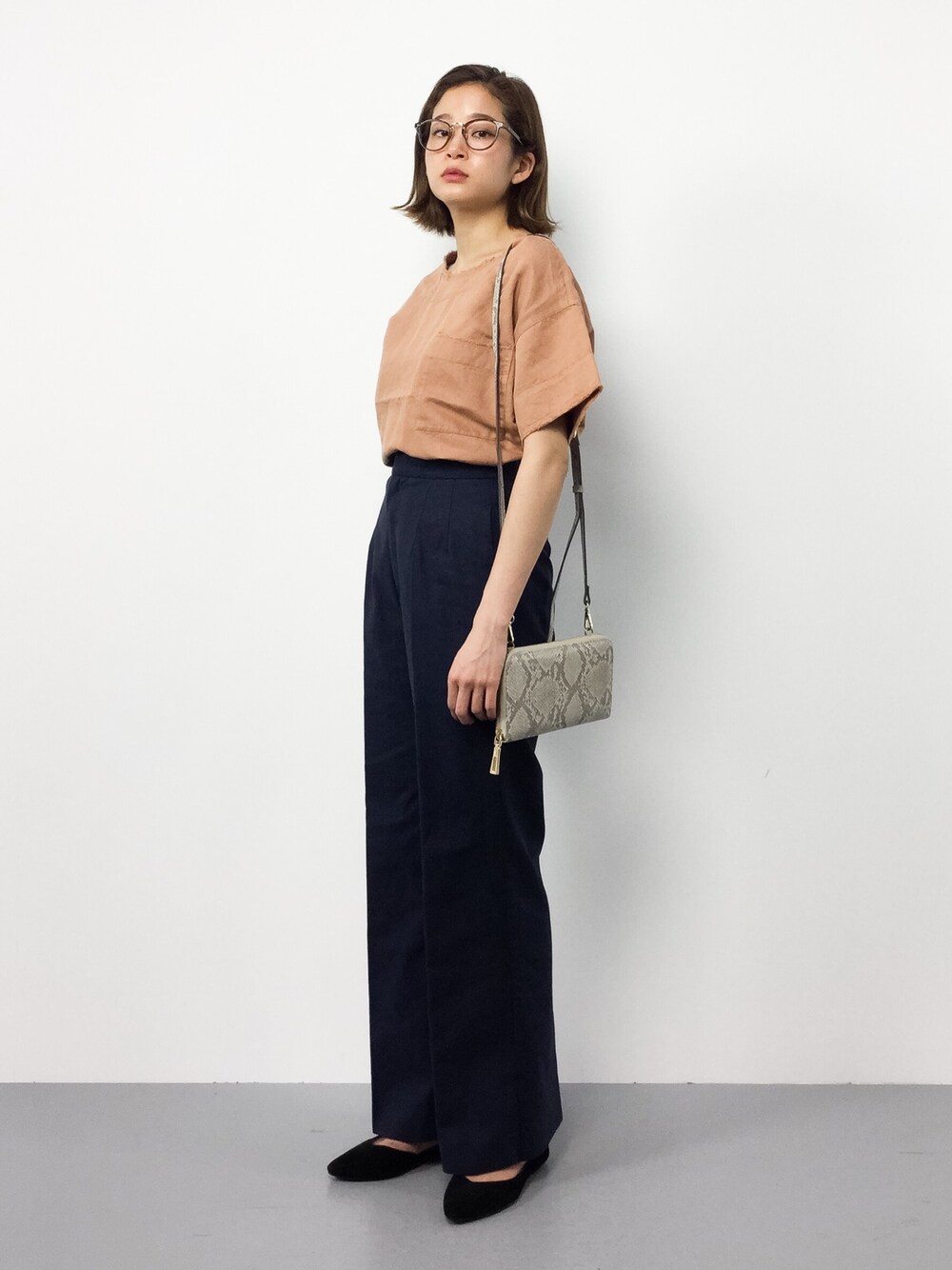 きれいめカジュアルコーデ ダークカラーのアイテムを使って夏を先取りしました。 トップスは、袖や襟ぐりがカットオフされているのでメリハリが出ます。 選びやすい3色展開になっているので、どれもオススメです!