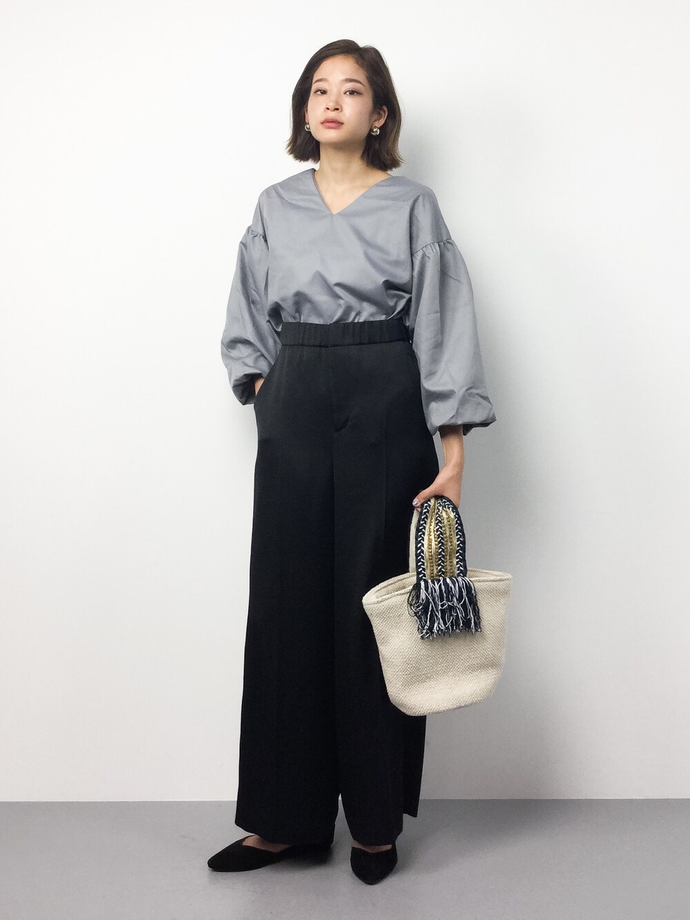 きれいめカジュアルコーデ ダークカラーのアイテムでまとめて、大人っぽく仕上げました。 トップスは、袖に個性があるのでワンポイントとしてオススメです。 ボリュームが丁度良く、トップスに目がいくので身長を高く見せてくれます!