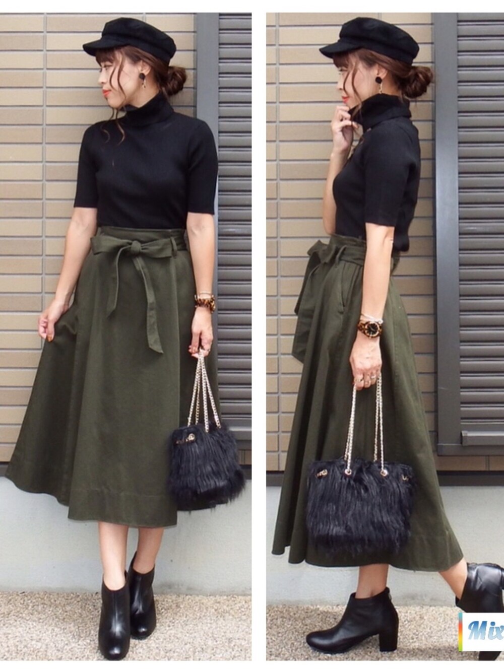 こんばんは😊🎵 大好きなカーキ✖︎黒コーデ☺️ ご覧下さってありがとうございます🙇✨ いいね、お気に入り、フォロー大変嬉しいです😊✨ インスタ⇨miho.a.nico オフィシャルブログ⇨プロフィールから飛べます✈︎✈︎✈︎