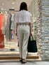 割繊生地のブラウス、さらっとしており、夏でも涼しく着用いただけます! 肩を覆うデザインで安心して着用いただけます!🕊️ ケープのデザインが、上品で大人可愛い印象に☘️ ケープデザインで胸やお腹周りも気になりにくいのも嬉しいポイント! パンツは、セットアップでお作りがあるトロピカルシリーズ! マットな素材感で、さらっとしているので、夏も涼しいです! 形もきれいで、センタープレス入りなので、きれい見えします☺️ 丈は少し短めなので、小柄な方にもおすすめ❣️