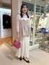 大人のピンクコーデ💕 キャミブラウス ふわふわした羽のような糸を織り込んだチュール素材が冬の華やぎシーズンムードを一気に高めてくれます! 薄手ニットや、シャツに重ねるだけで、一気にトレンド感を取り入れられるアイテム! タートルインナー ウール100%の薄手ニット! 手洗い可能で毛玉になりにくいイージーケア ノーリーズのものより、コンパクトめで、丈も短めなので、インナーとして着回ししやすいです! スカートは、一枚マストで持っておきたいナロースカート! 腰回りはぴたっとシルエットで、裾がフレアになっているマーメイドシルエット! 細見えし、ゆったりニットやシャツと合わせるだけで、大人のこなれ感あるコーデが完成します! オールシーズン着用可能です!