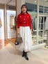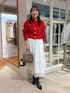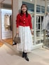華やかお出かけコーデ💐 鹿の子ニットカーディガン お袖はボリューム感あるふわっとしたシルエットで、袖口に向かってきゅっとなっているので、まくりやすいです! 着丈もコンパクトで、どんなボトムスにも合わせやすいです♡ シャツやタートルニットをレイヤードするのもおすすめ! 金ボタンがコーデのポイントになります! スカートはチュール×タフタの2way仕様 お花とチュール素材が軽やかで、優しい印象に見せてくれます! ふわふわニットとの合わせもおすすめ! ウエストゴムで楽ちんな着心地!