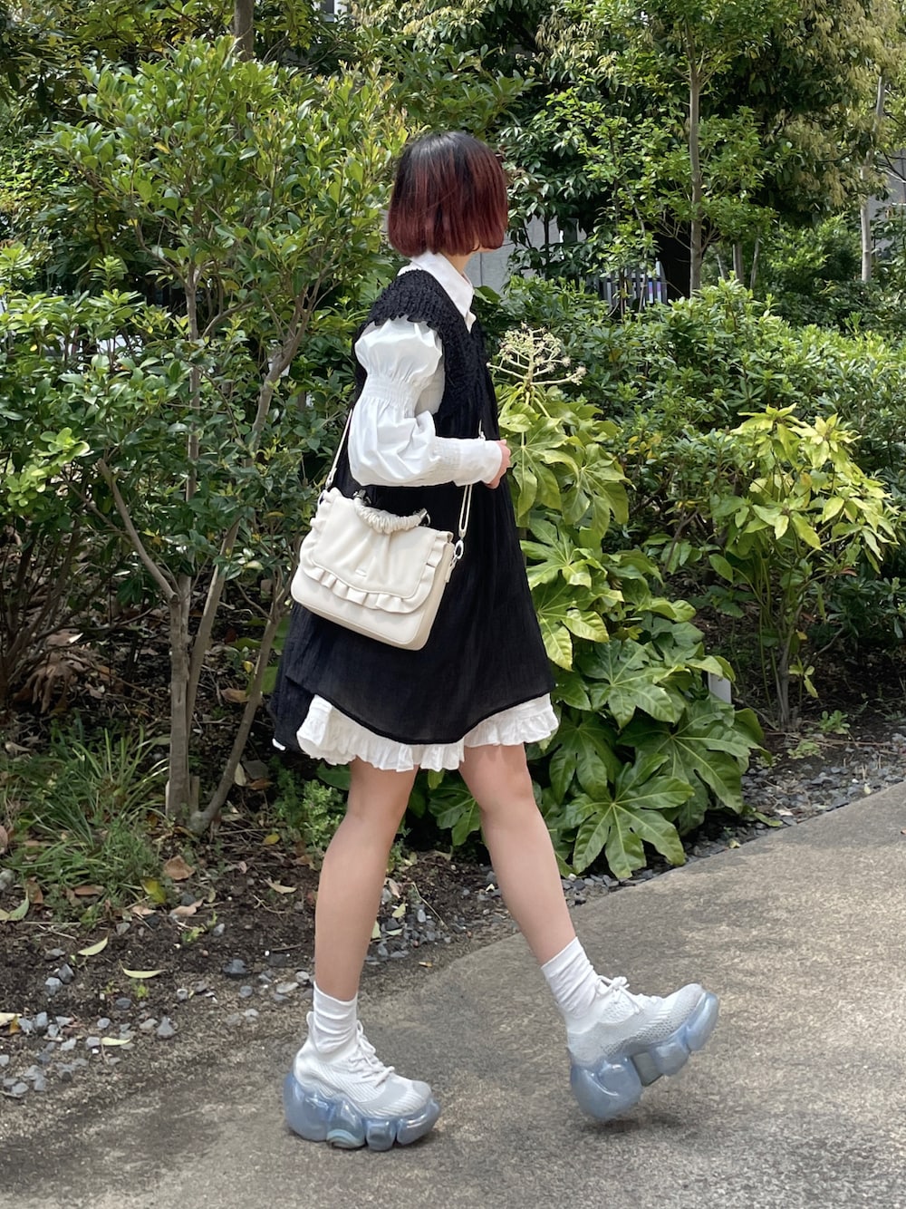 ワンピースの裾から チラッとワンピが見えるところがポイント! 最近暖かくなってきたから アウターなしでお出かけできて嬉しい🫶 ミニ丈の時は厚底シューズを履くのが好き💭
