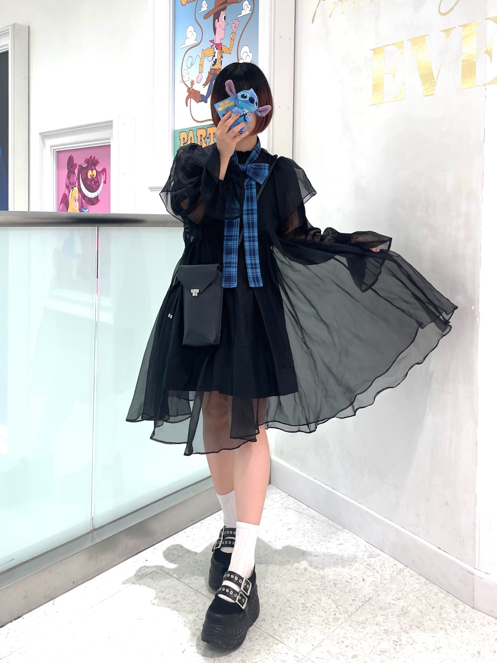 この日はスティッチっぽさを出したくて リボンをブルーチェックにしたよ🫶 前に作ったワンピースを着たら やっぱり可愛かった💭