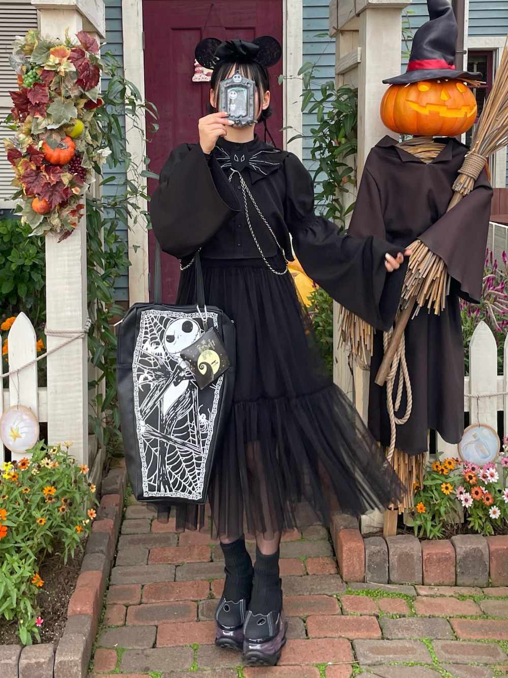 ジャックをイメージした お気に入りのコーデ!! 上下シンプルなブラックで揃えて バッグやアクセサリーが目立つコーデに💭