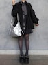 グレー×ブラックで シルバーのバッグが差し色!! 最近お迎えしたグレーのストッキングが とっても可愛くてお気に入り! ミニ丈履きたいけど 肌見せしたくない!って時におすすめ! 黒よりも柔らかい印象になる🫶