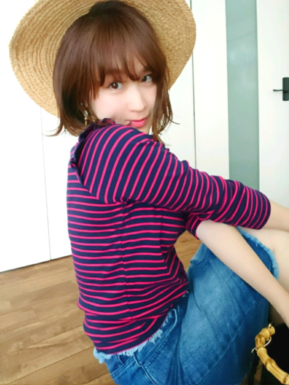 トリコロール部 活動中。 肩の小さなフリルがポイントのネイビー×赤ボーダーとフリンジデニムスカート⚓ ♥️ save follow THANK YOU!!
