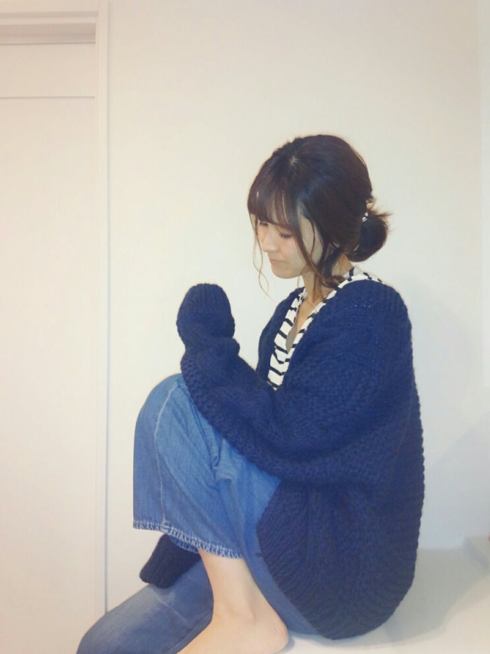1日☔で外で撮れないは寒いはで家事がはかどりました🏠✨ 仲良しのカズ坊に伝授してもらった洗面所での自撮りを早速やってみました😊 私は座っちゃったけど(笑) めちゃめちゃあったかいケーブルニットカーデお気に入り❤ ♥.save.follow Thank you.