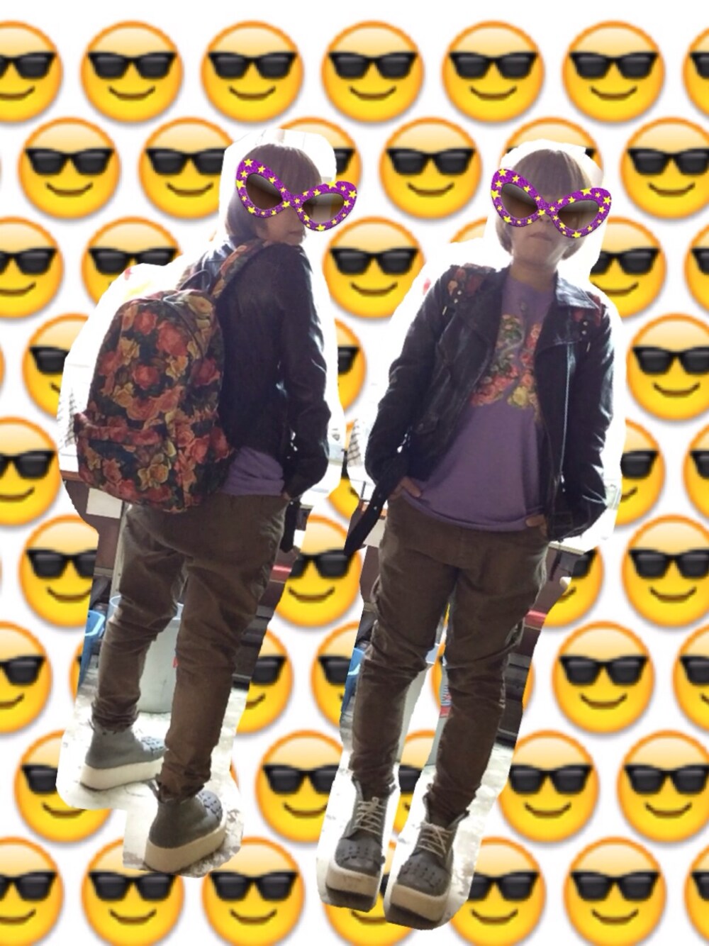 USED加工のライダースはお気に入りだったけど 合皮なのでヒビ割れてきました😭残念〜 あちゃちゅむのTシャツはプリントが3Dです! しかも…お花が可愛く見えますが… 実は…肺です🌺🌻🌹www そーいうとこ大好きです💓💓💓