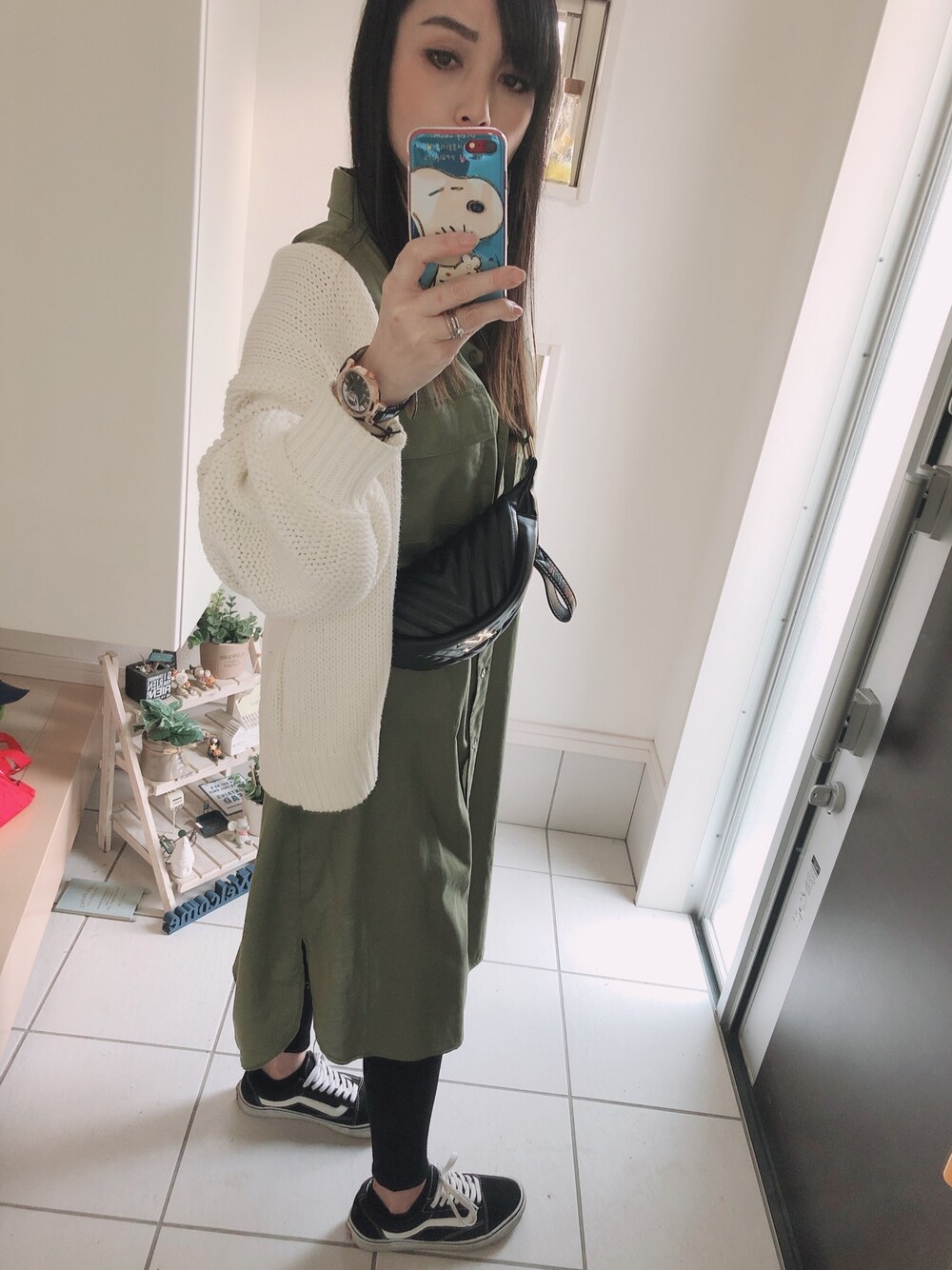 kiriのシャツワンピース「とろみミリタリーシャツワンピース/スプリングコート」を使ったコーディネート