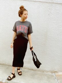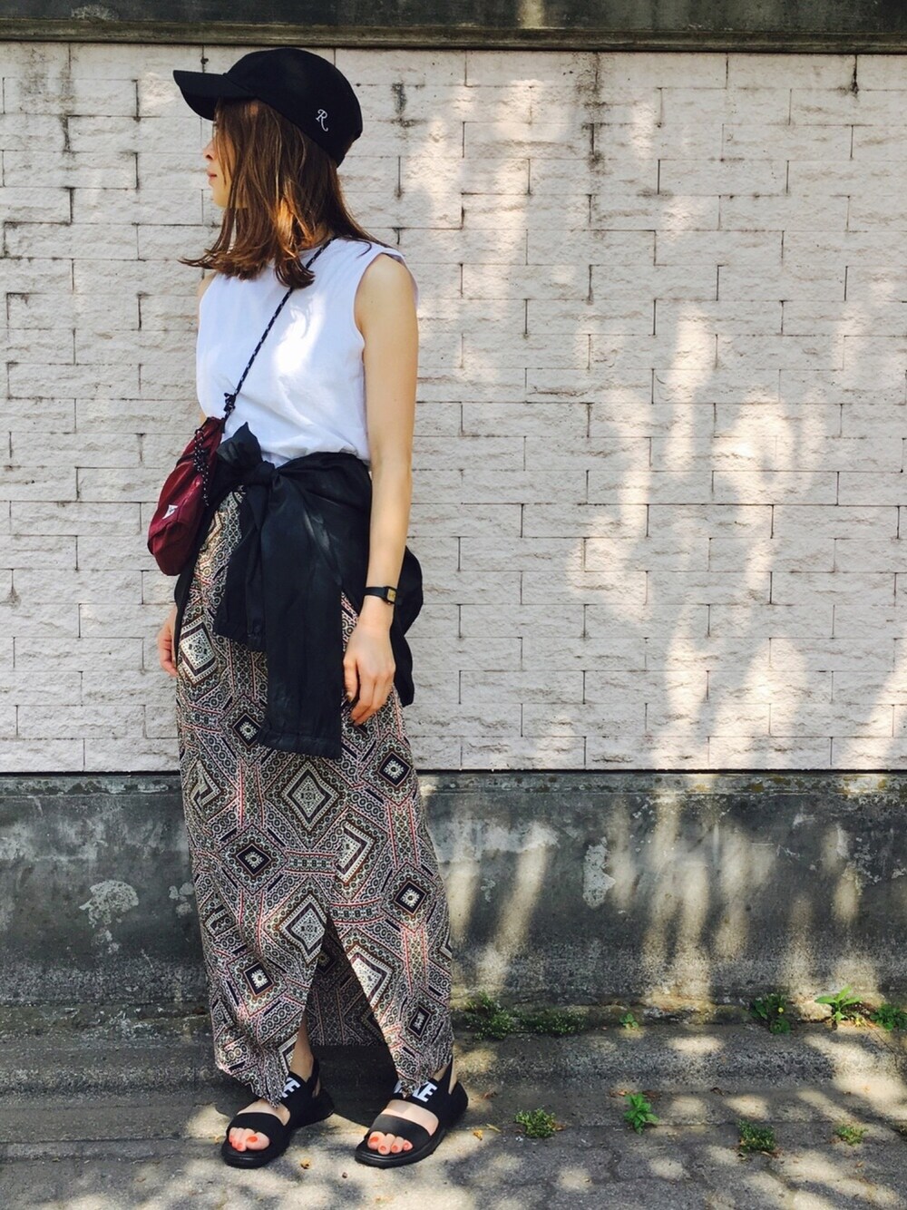 野尻美穂のスカート「【Gina 夏号掲載】【SPRiNG 7月号掲載】エスニックプリントマキシラップスカート」を使ったコーディネート
