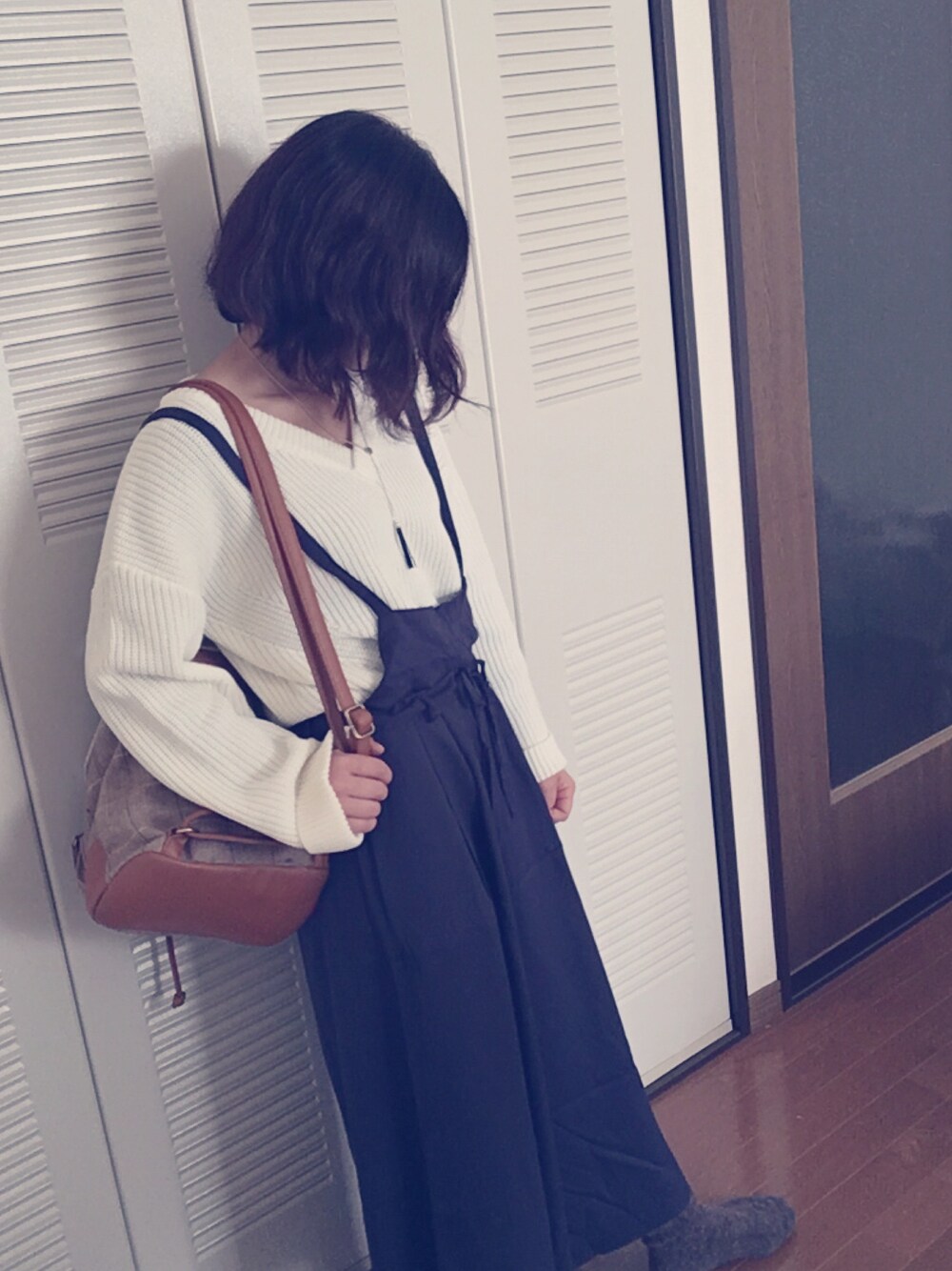 たなかみほのニット/セーター「5ゲージアゼクロップドVロングスリーブ 713369」を使ったコーディネート