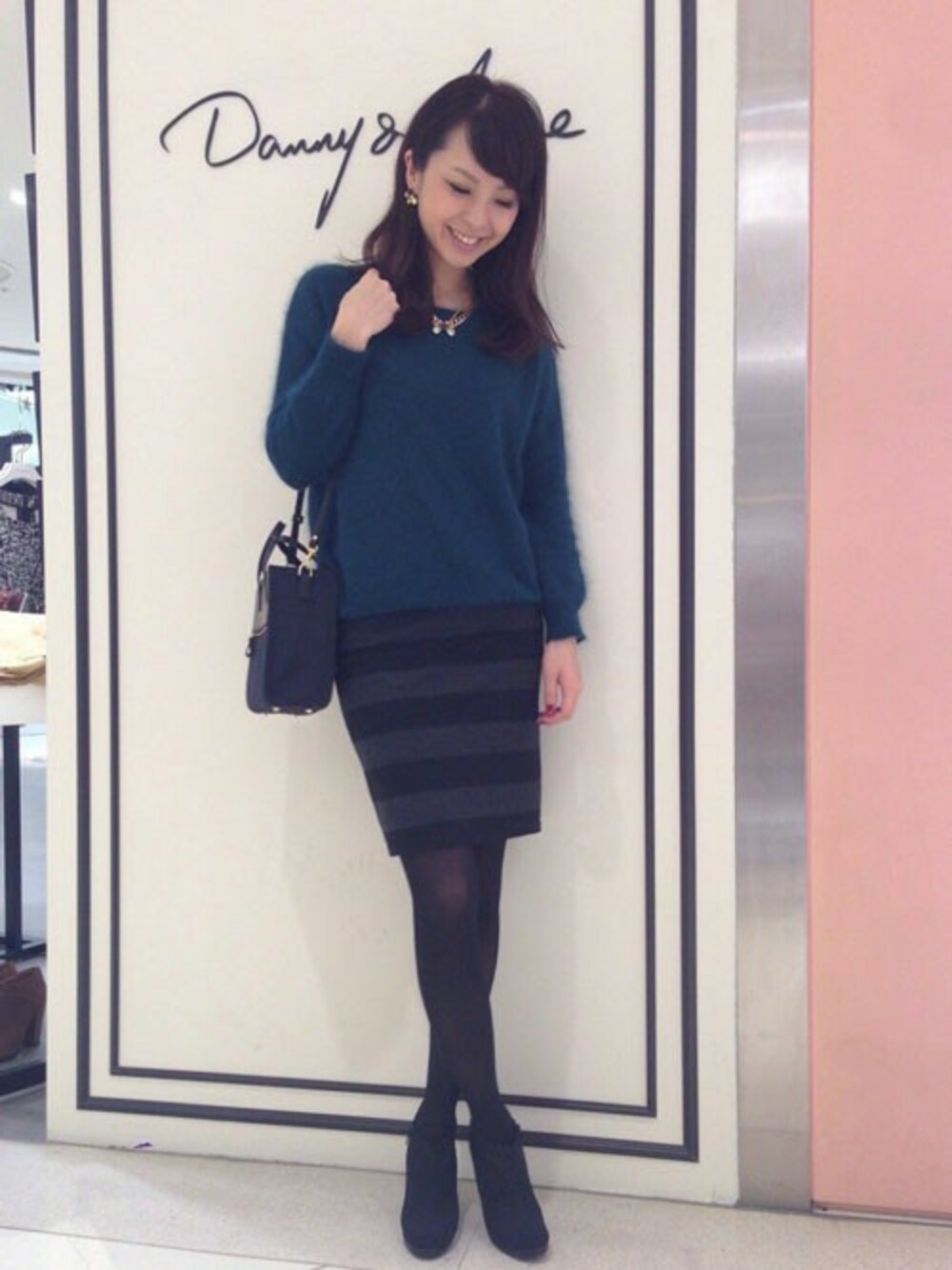 人気のアンゴラニットを、新作のボーダータイトスカートとコーディネート。 ニットもスカートもシンプルなので、着回しが効くおすすめアイテムです♪