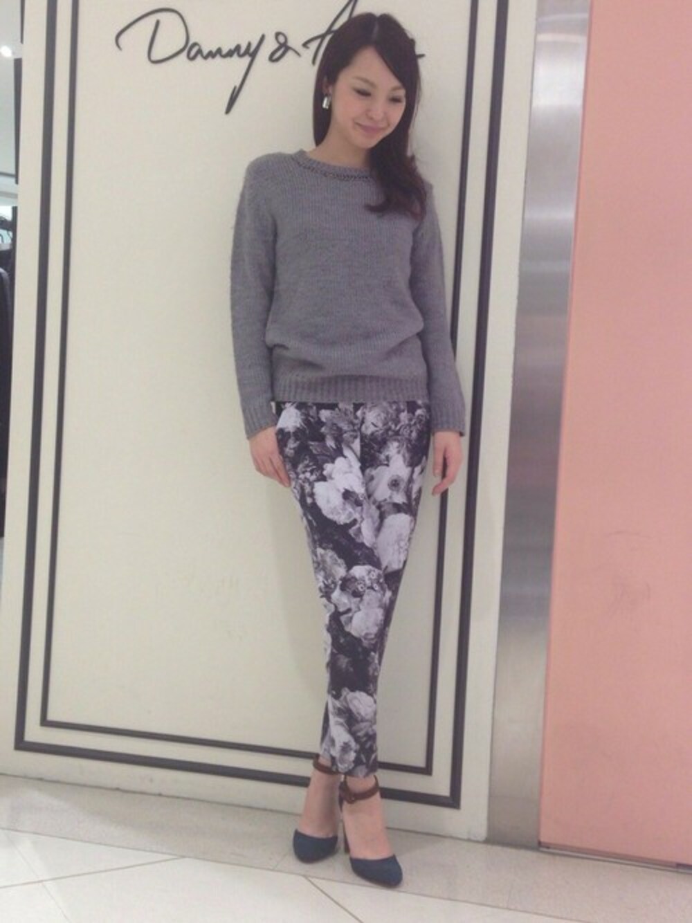 グラフィカルなフラワープリントは、Danny&Anneオリジナル柄! トップスはシンプルなニットを合わせて上品に着こなしました^^