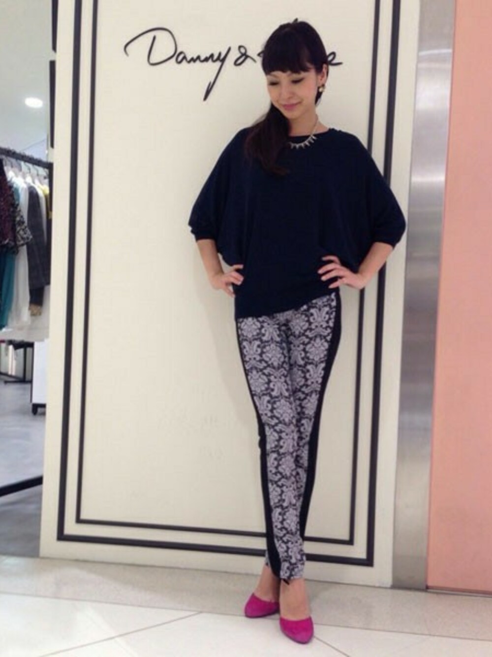 さらっと1枚で着たい、ドルマンスリーブのニットは店頭でも人気のアイテム! ボトムにはタイトなものを選んでメリハリをつけました♡