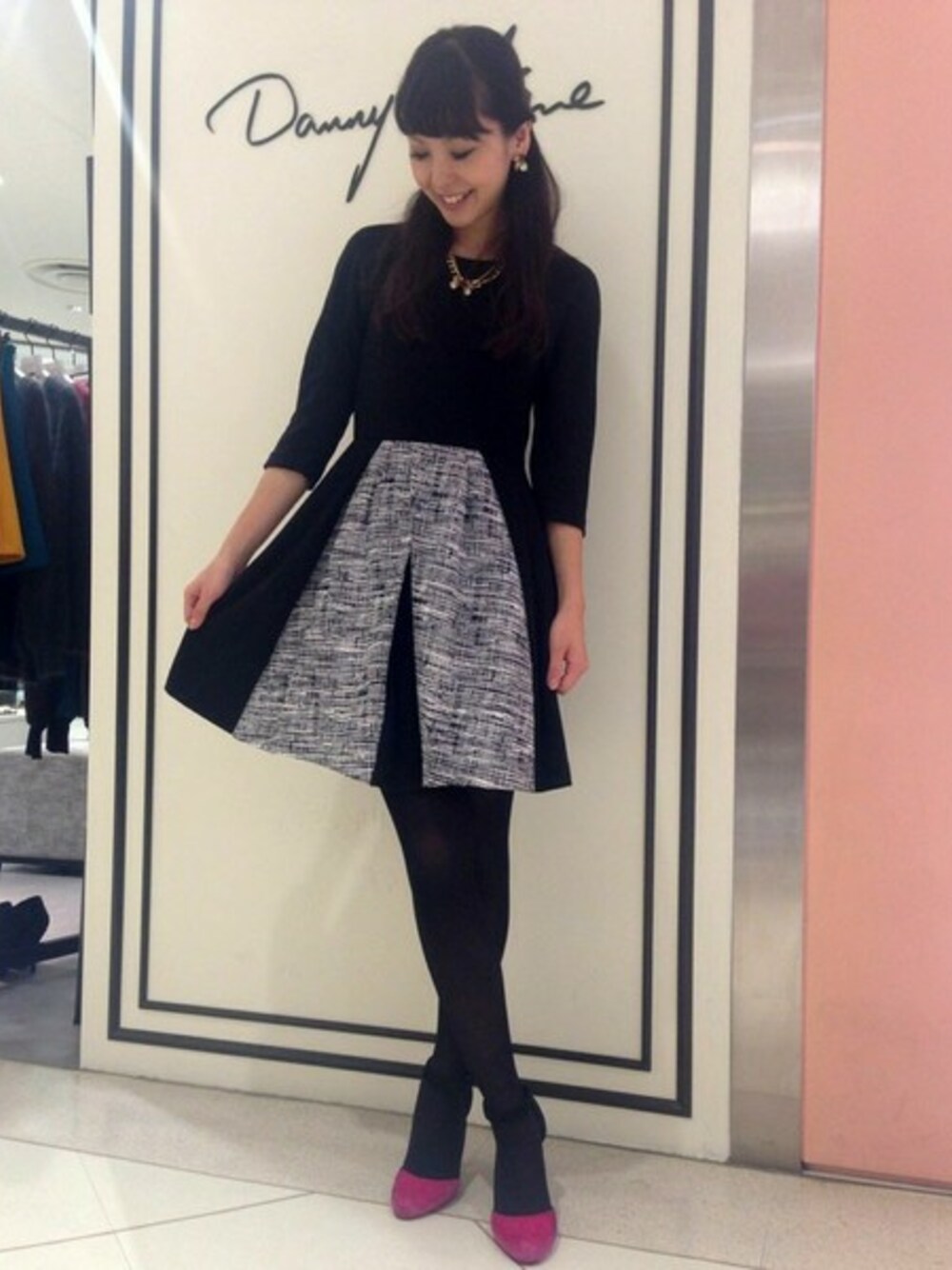 1枚でコーディネートが完成する、Danny&Anneのワンピース♡ スカートのフロントがツイードの切り替えになったお嬢様ワンピ! SHOPでも人気のアイテムです!