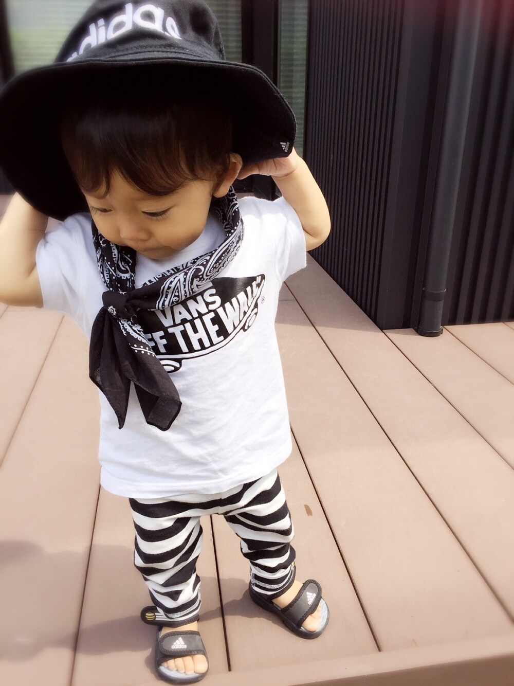 見ていただきありがとうございます😄 しょわーずオセロフェス参加させて下さい😍 ハンドメイドTにお気に入りにユニクロボーダーレギを合わせました♩ ハットはかなり大きいパパの物ですが、今日のコーデに入れたかったので拝借😏♡ キッズの同じのもあるから欲しいなーー💕 DAISOのバンダナもお気に入り😆 とゆうか、最近バンダナ使いすぎw❓ 嫌がらずつけてくれるからつい…😅 みんなのオセロコーデも楽しみだなー♩