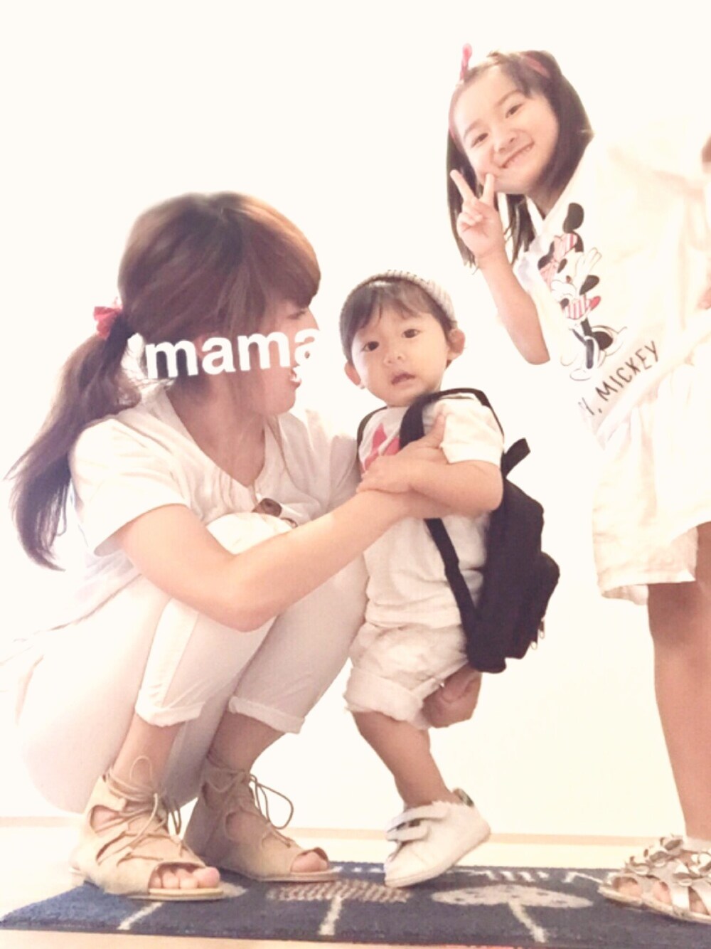 見ていただきありがとうございます🙏✨ 調子にのって2日連続登場母😳 すみませーーん💦 人数多くなると大変💧どう撮ればいいかもわかりませーん😂😂 お姉ちゃん、微熱の為、保育園お休み😢 でも元気があるので家族リンク💗 オールホワイト×ミッキーT×赤×黒…とそれぞれリンク😍 母の全身、小窓にて載せました😊 タンクレイヤードはれっととリンク💗 おNEWのサンダルはペタンコで楽ちん😁saleでお安くgetできました✨
