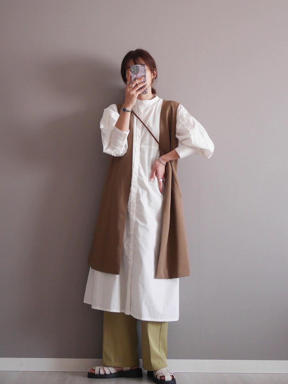 miiのシャツワンピース「コットン刺繍ロングワンピース」を使ったコーディネート