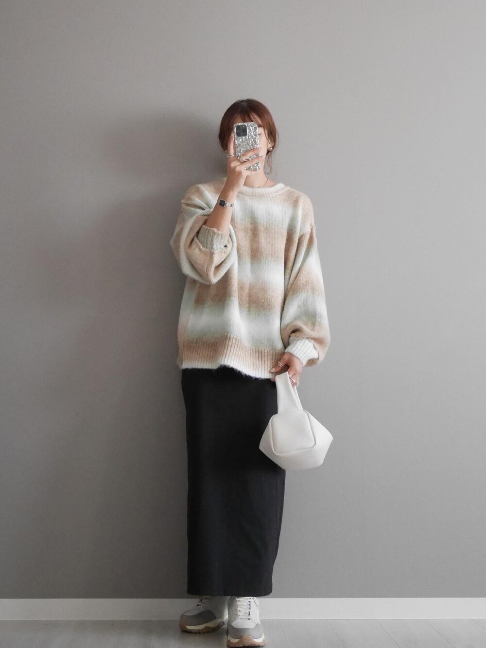 miiのカーディガン/ボレロ「オーバーサイズ グラデーションニットカーディガン」を使ったコーディネート