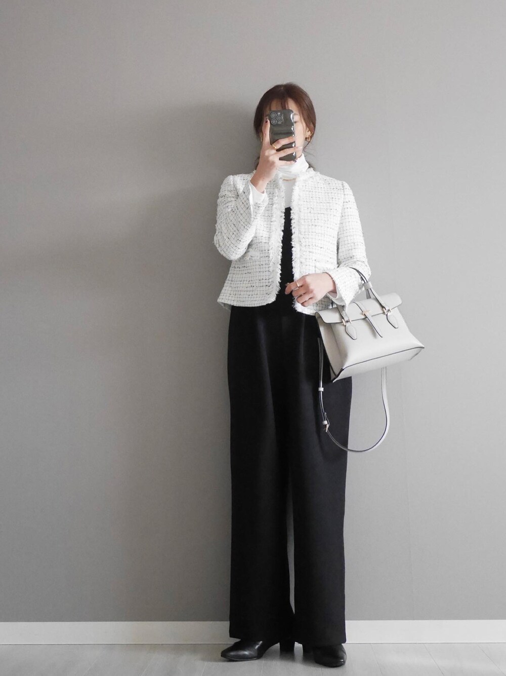miiのノーカラージャケット「ミックスツィードノーカラー ジャケット」を使ったコーディネート