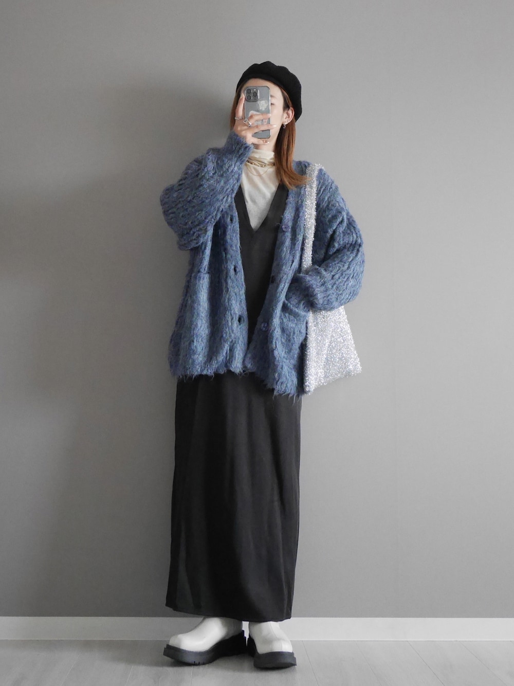 miiのカーディガン/ボレロ「WEGO/ブラッシュニットビッグカーディガン」を使ったコーディネート