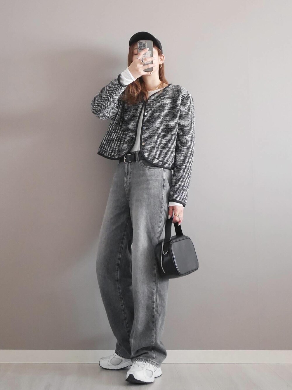 イチオシのツイードジャケット☝🏻🫧 サッと羽織れて、着まわしも楽々❣️ パンツスタイルもスカートもワンピにもおすすめ😚💓 オケージョンにも大活躍なこのツイードジャケットは ULEULAのものです🫶🏻💗 ZOZOTOWNでタイムセールしてるよ🫧 《PR》 ULEULA ↪︎ツイードノーカラーパイピングジャケット/オケージョン