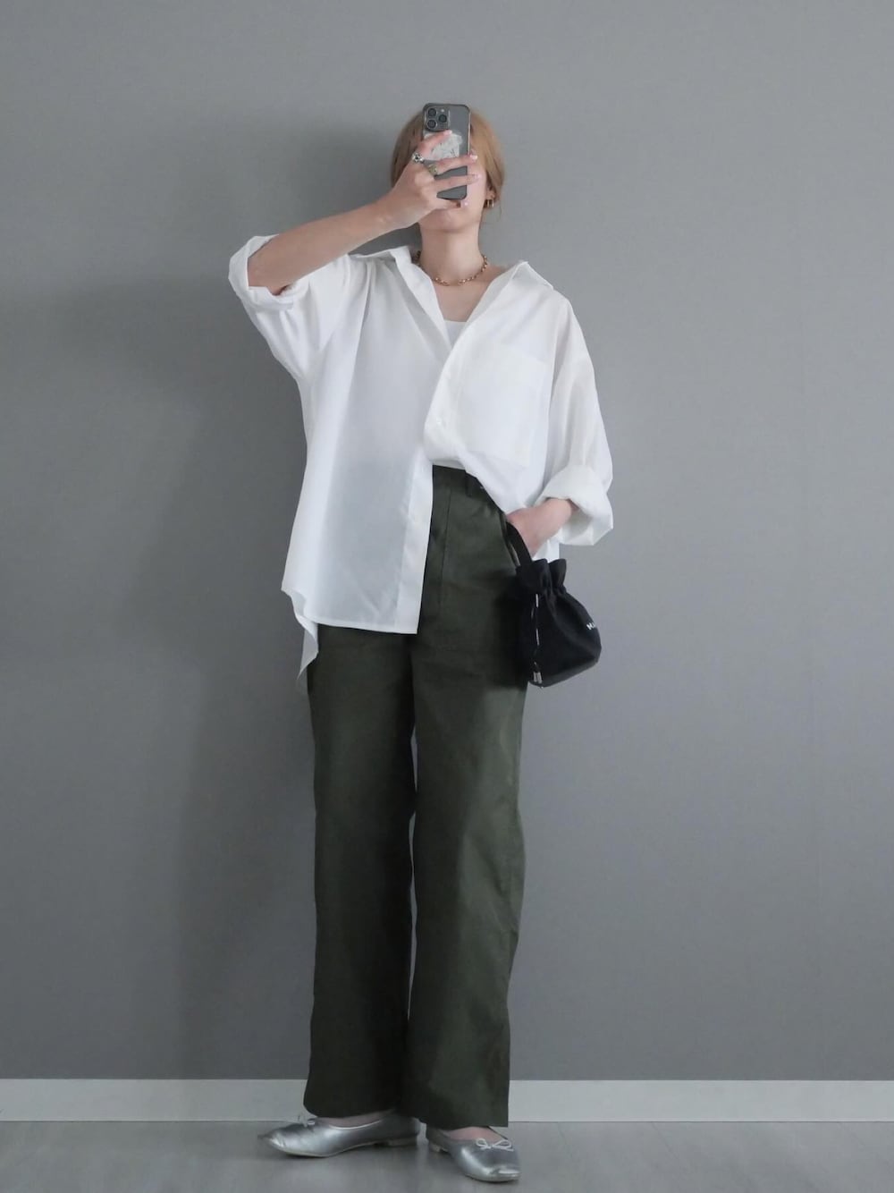 miiのシャツ/ブラウス「ビックシルエットシャツ/オーバーサイズベーシックシャツ」を使ったコーディネート