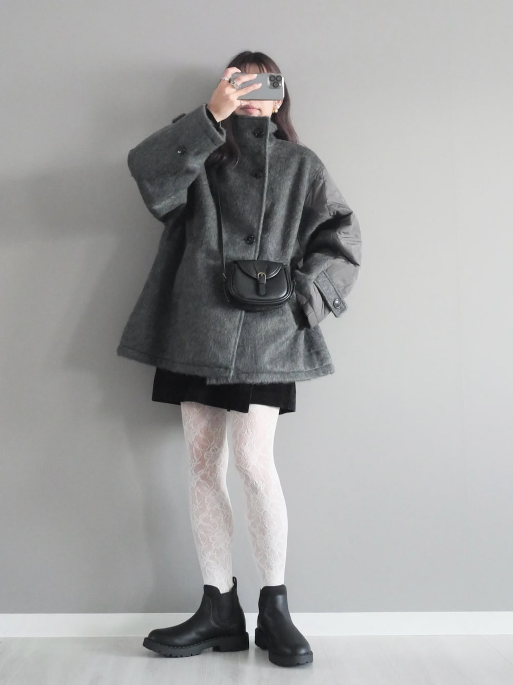 miiのステンカラーコート「2wayシャギー×キルト切替スタンドネックコート」を使ったコーディネート