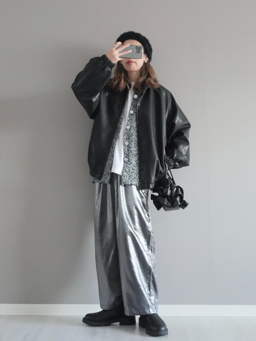 miiのブルゾン「Vintage-like synthetic leather blouson/ヴィンテージライク PUレザー ブルゾン」を使ったコーディネート