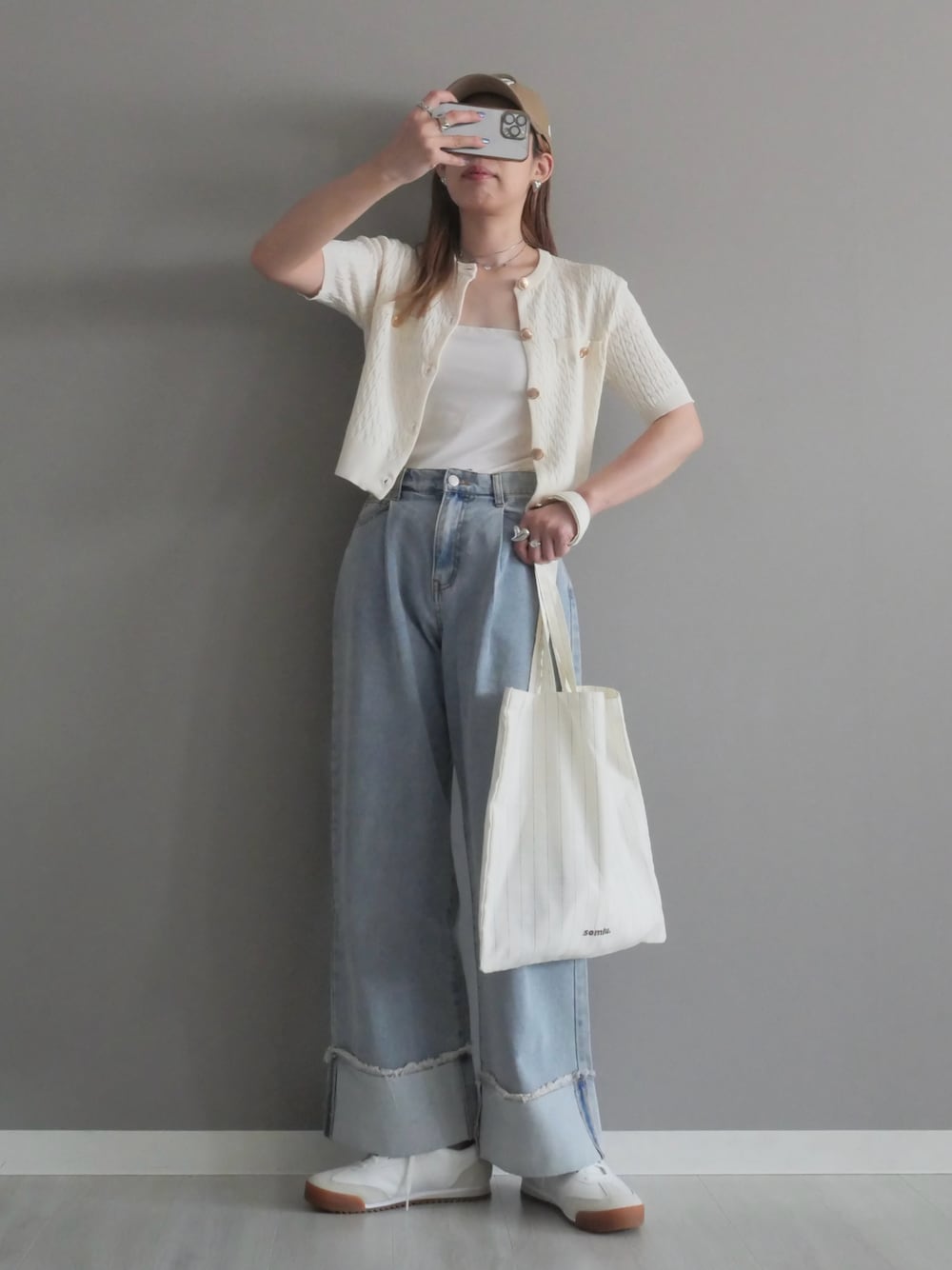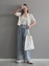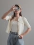 miiのカーディガン/ボレロ「金釦半袖ケーブルカーディガン」を使ったコーディネート