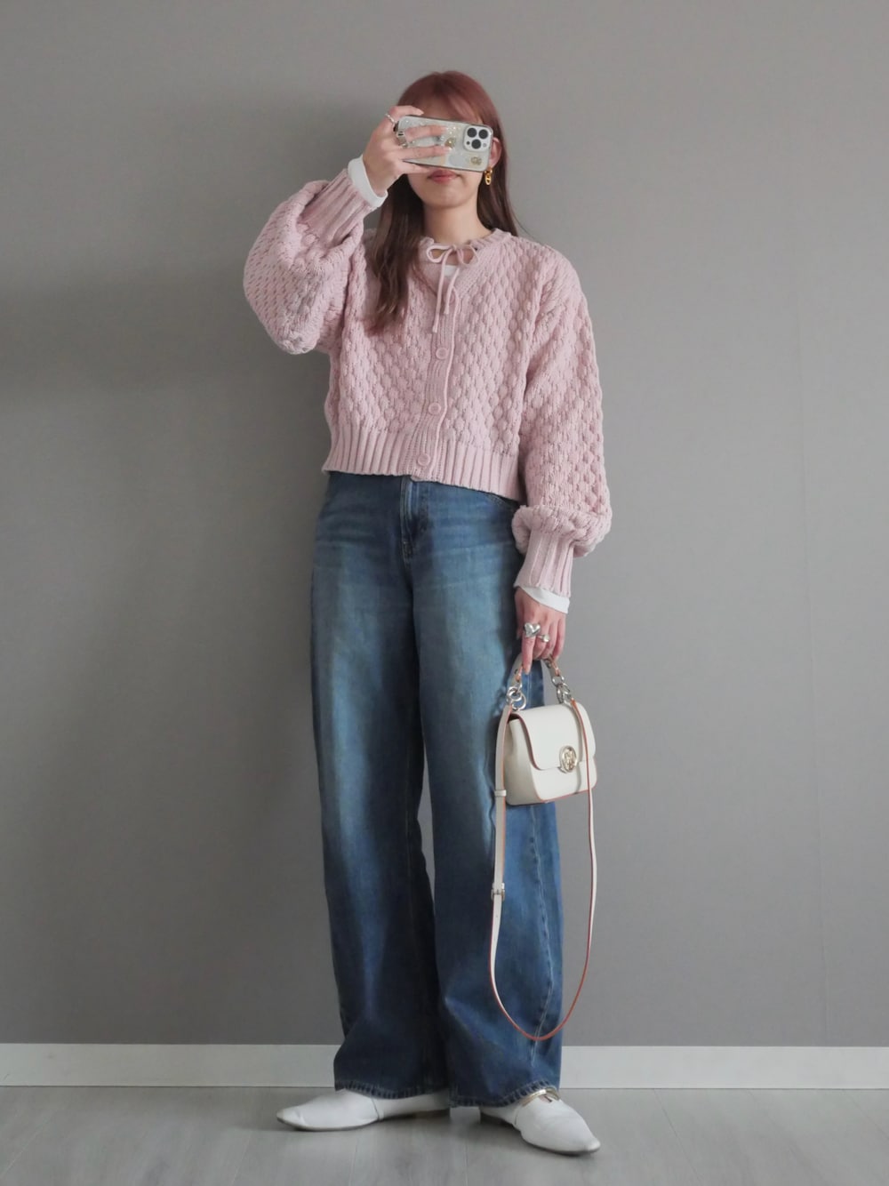 miiのニット/セーター「ポコポコ編前後2wayカーディガン」を使ったコーディネート