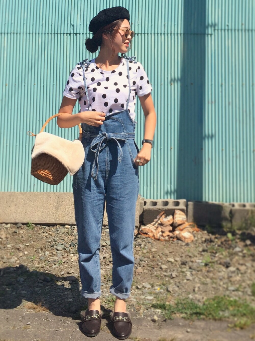 インスタ: mii_wear ▷プロフから飛べます✈︎ ドットtシャツ×リボンサロペ