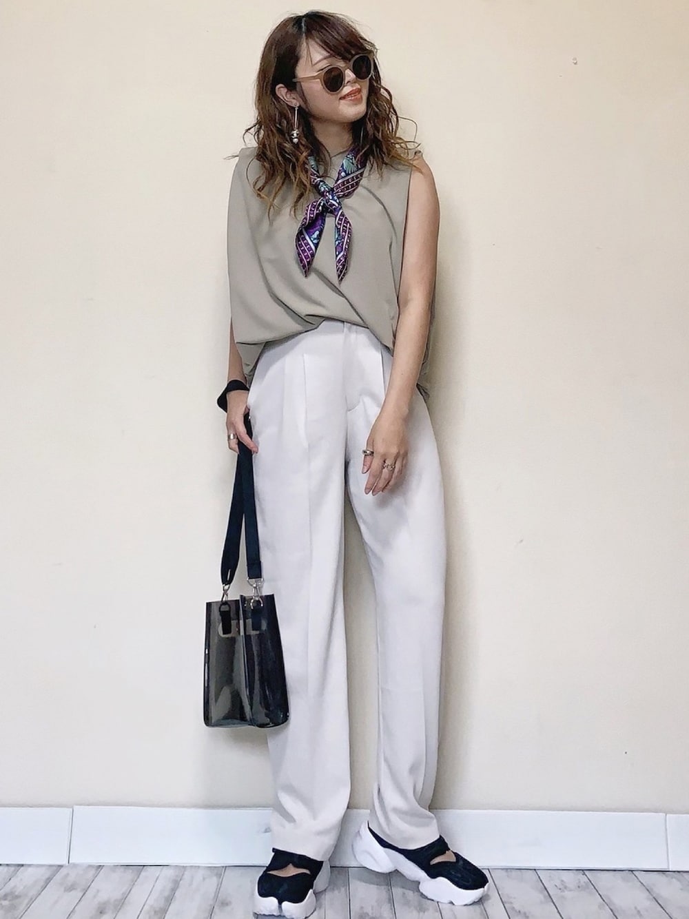MiiのTシャツ/カットソー「クレープジャージーT(ノースリーブ)セットアップ可能」を使ったコーディネート