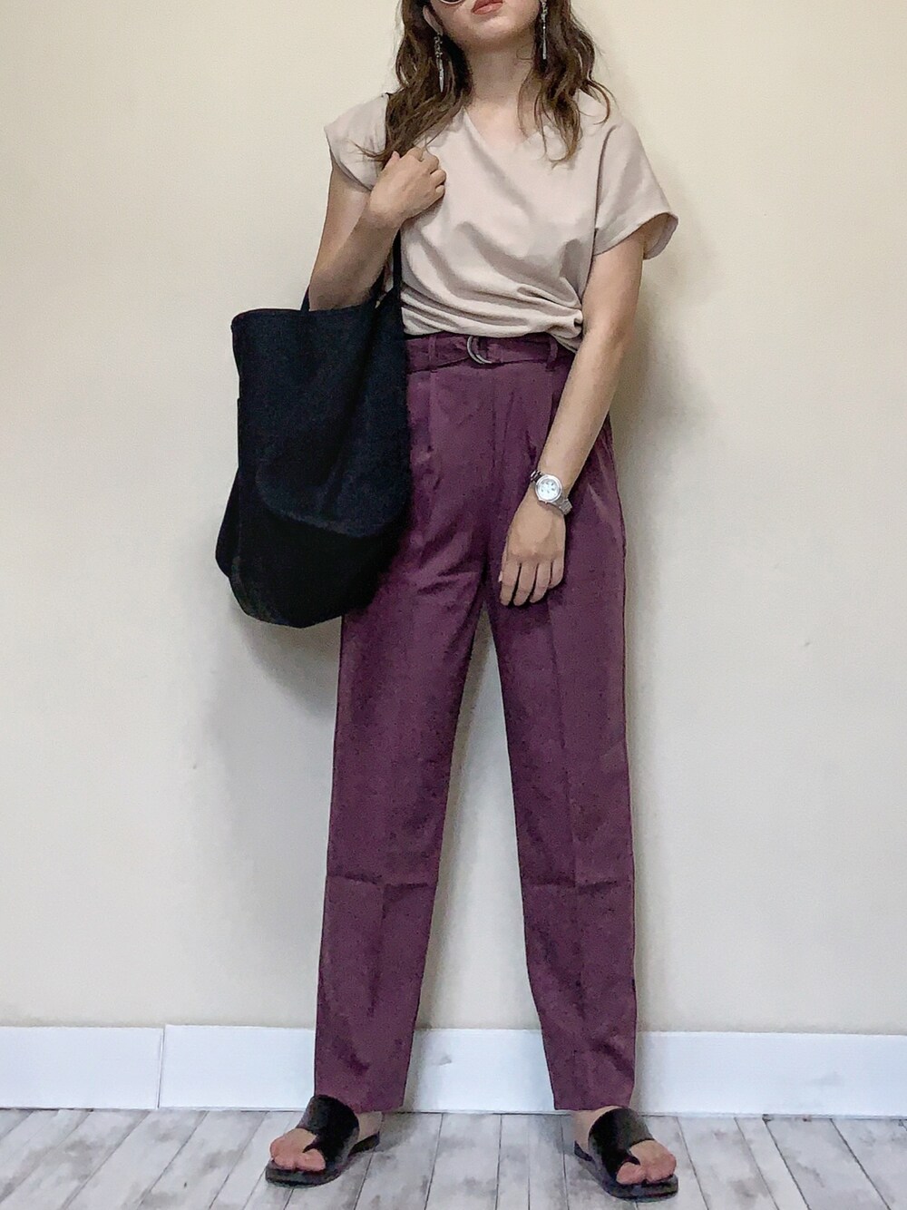 𝙸𝚗𝚜𝚝𝚊𝚐𝚛𝚊𝚖 >>>> 𝚖𝚒𝚒_𝚠𝚎𝚊𝚛 深みのあるパープル🍇好きᐠ ♡ ᐟ 脚のライン拾わないテーパードシルエットで スタイル良く見せてくれる🥺👏🏻 バッグは、PCも入る大きさ𖤣𖥧𖥣。 こーゆうラフに使える黒トート探してたから ぴったりの見つかって嬉し🤩