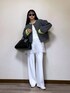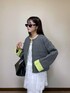 配色がポイントのニットカーデ🍋🟩🩶 ボックスシルエットでゆったり着れる✨️ レースキャミ×タックワイドパンツの ホワイトコーデに合わせたキレイめカジュアルスタイル。