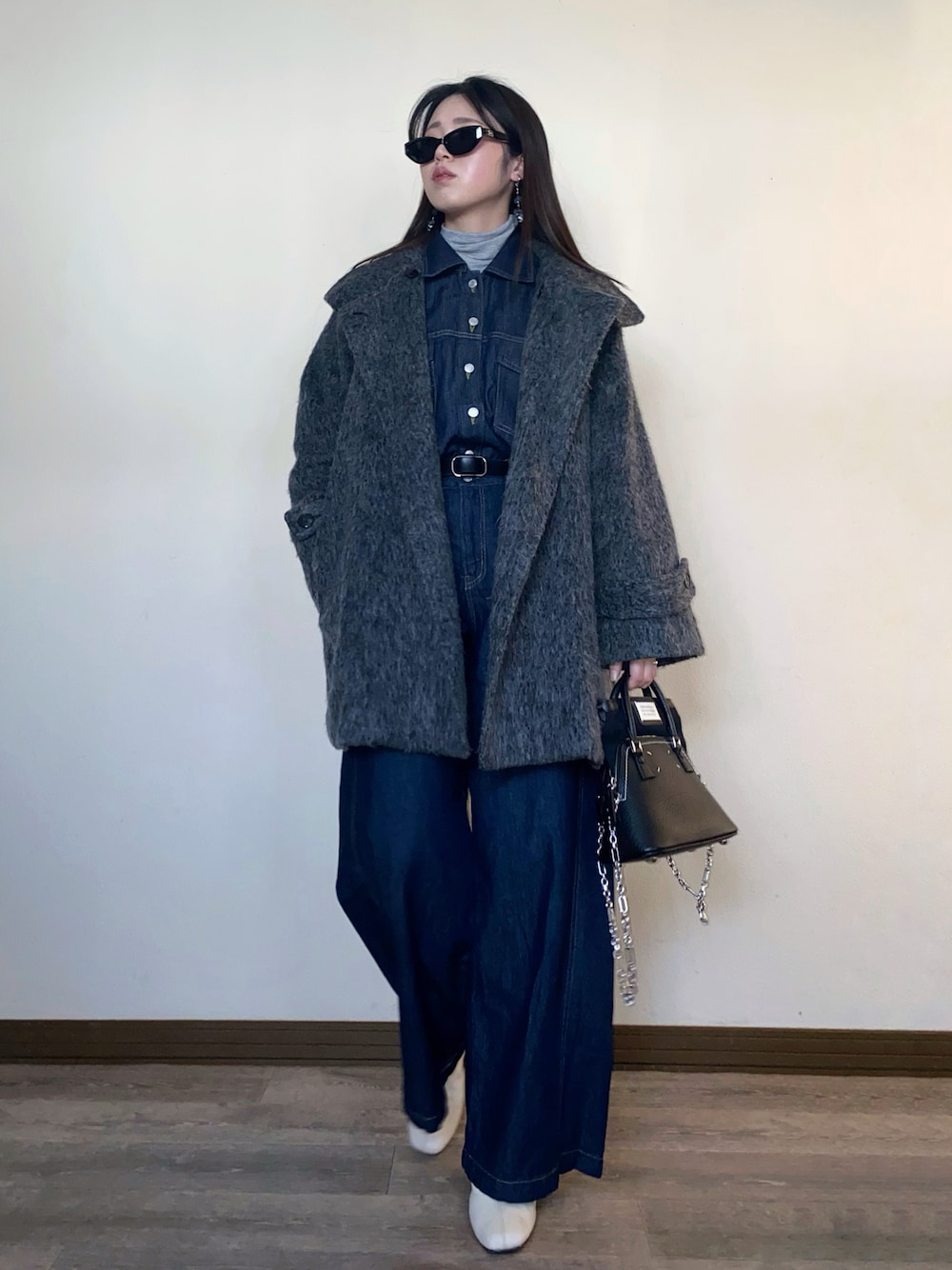 デニムのセットアップにシャギーコート👖🩶