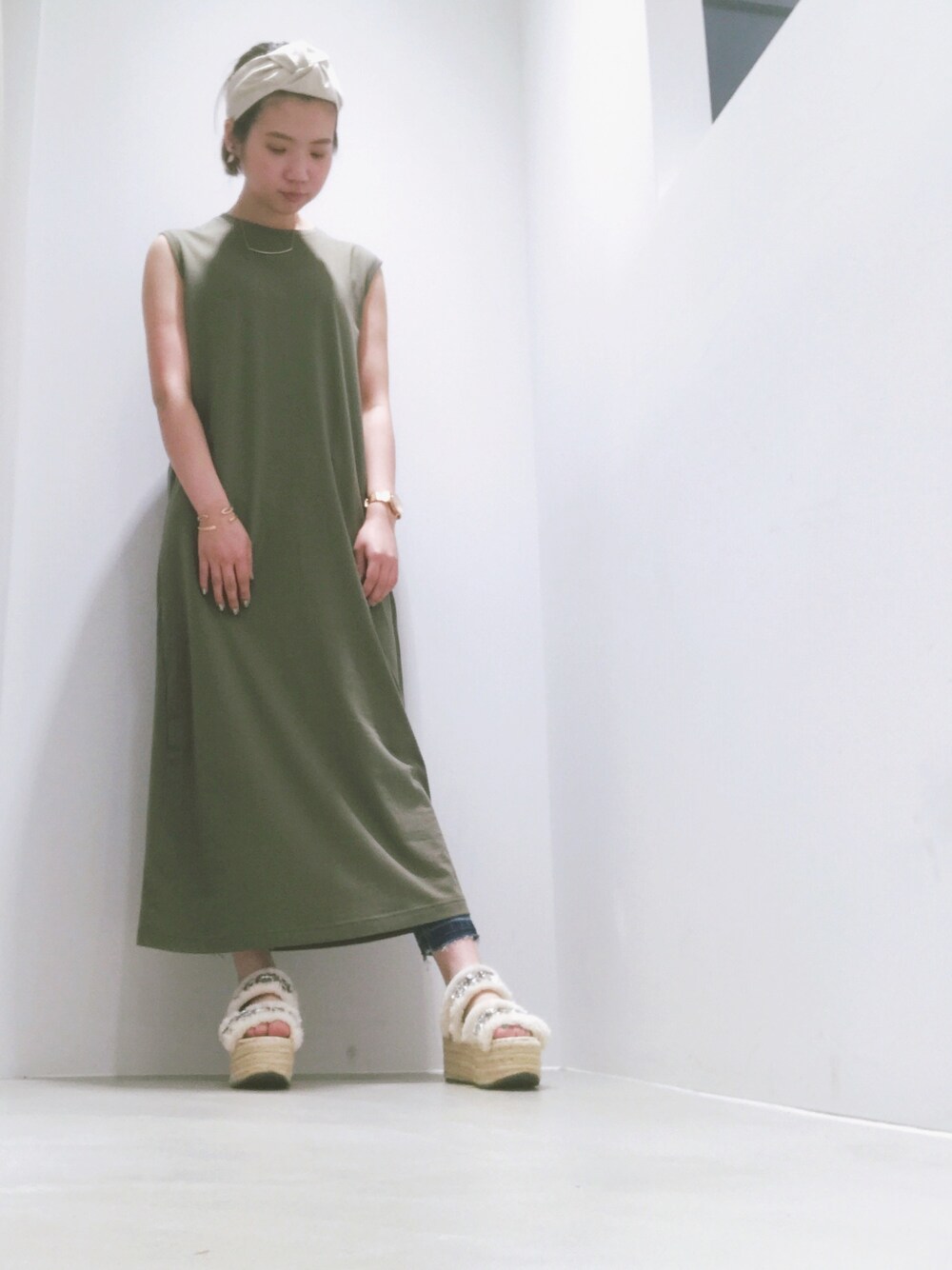 misakiのワンピース「・ノースリーブカットマキシワンピース」を使ったコーディネート