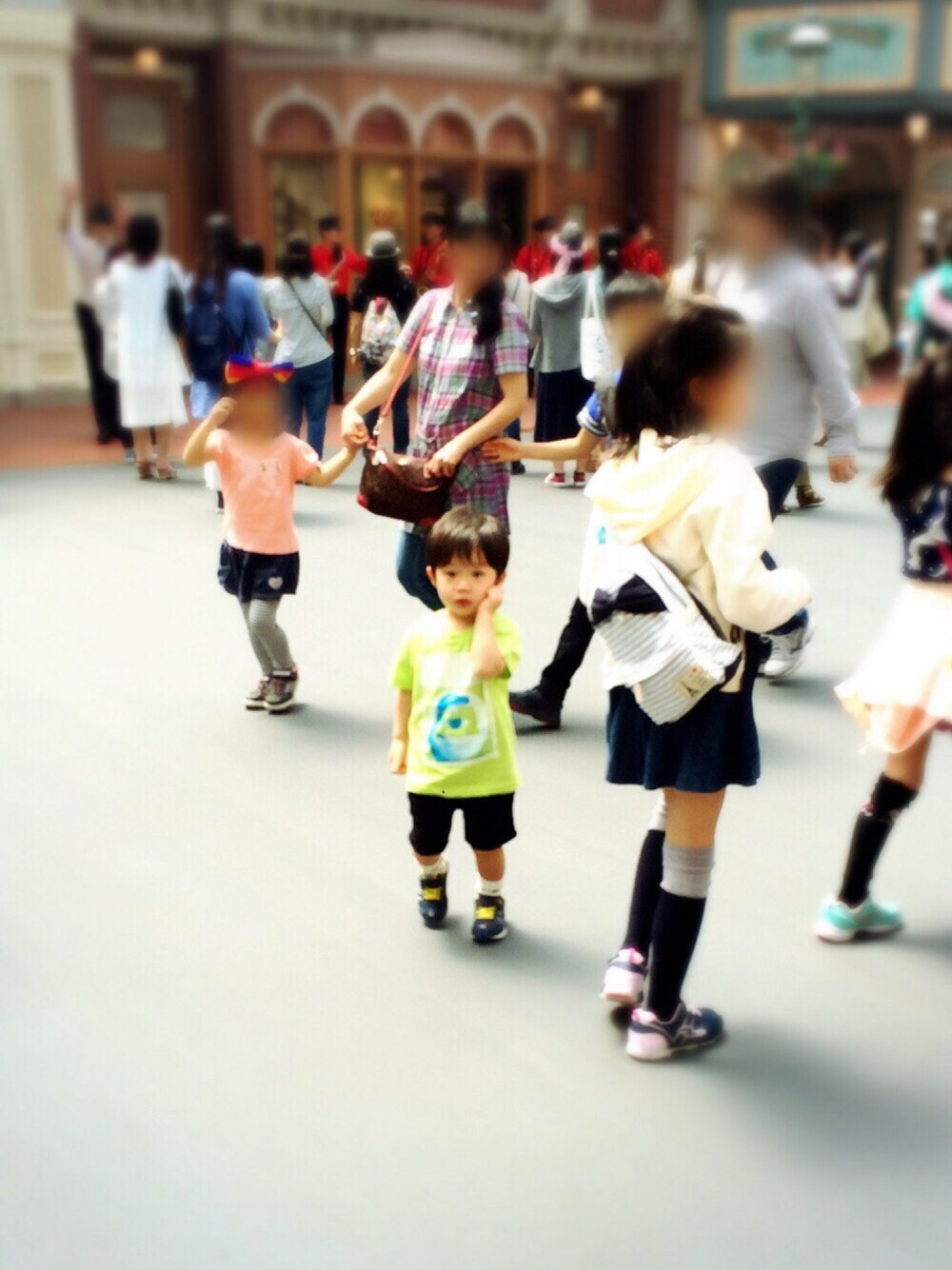 夢の国♡ 唯一の家族写真はりくさん大泣き(´◡`๑) おサルさんもションボリ🙈笑 でも終始楽しんでくれたみたいだから よかったー❤️️ ぱぱ運転ありがとう✨ また行こうね🎀