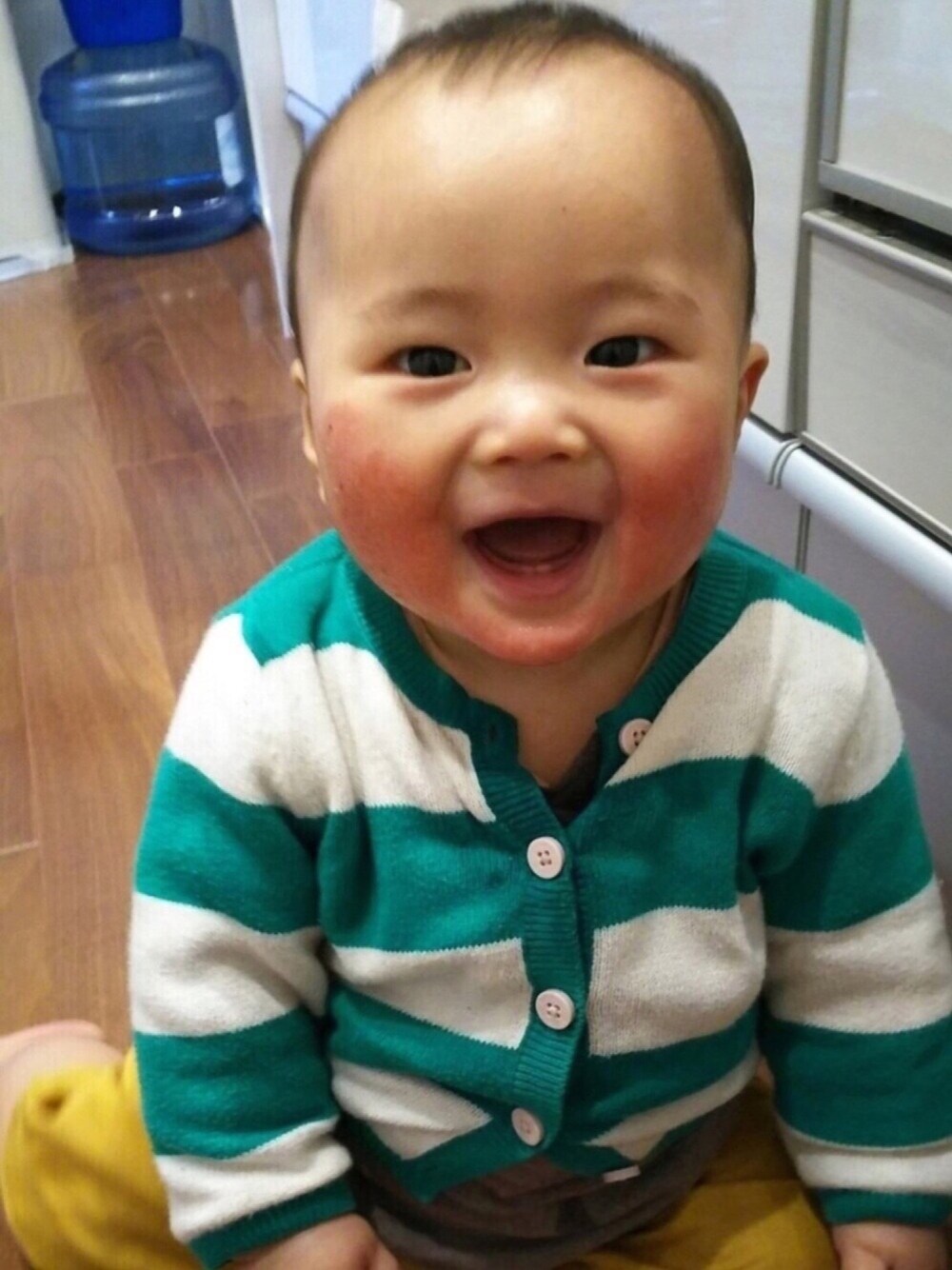 ニッコリすると歯が見えて可愛い👶🏻💕 下の歯2本しかないのは今だけだなーとしみじみ考えて、 余計いとおしくなる🙈❤️