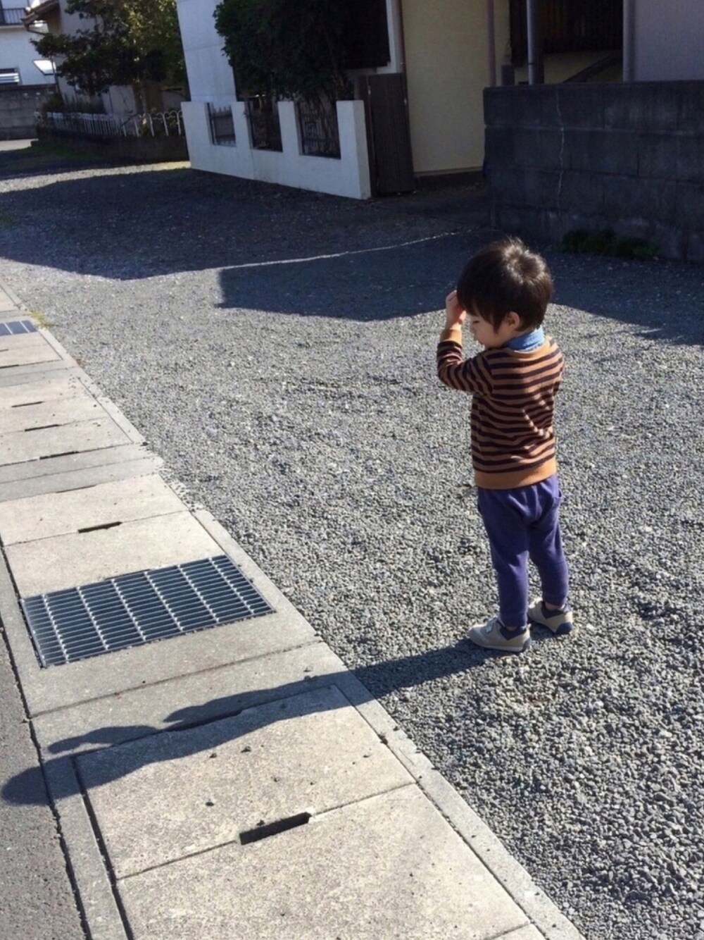 次男ベビーカーで、長男とお散歩🌸 影でポーズをチェックする長男👦🏻笑