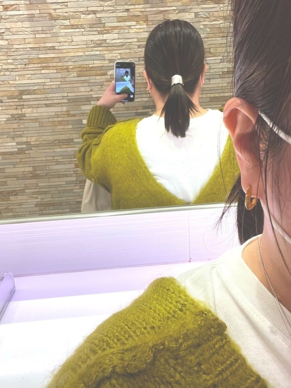 マスタードなのか黄緑なのか?よく分からないカーディガン。。。