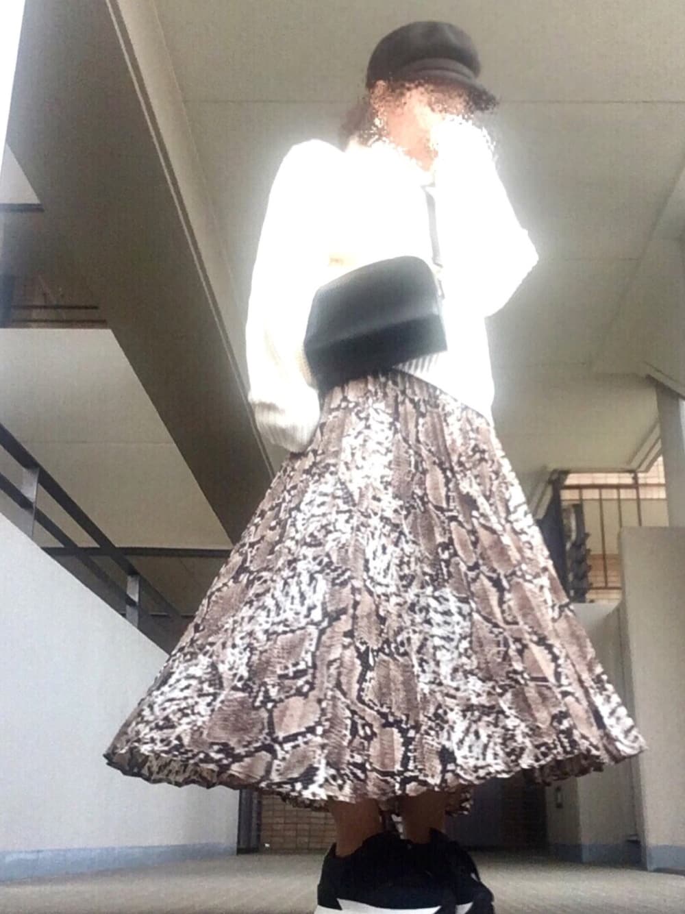 mi-goのスカート「レオパードorパイソン アニマル柄プリーツスカート」を使ったコーディネート